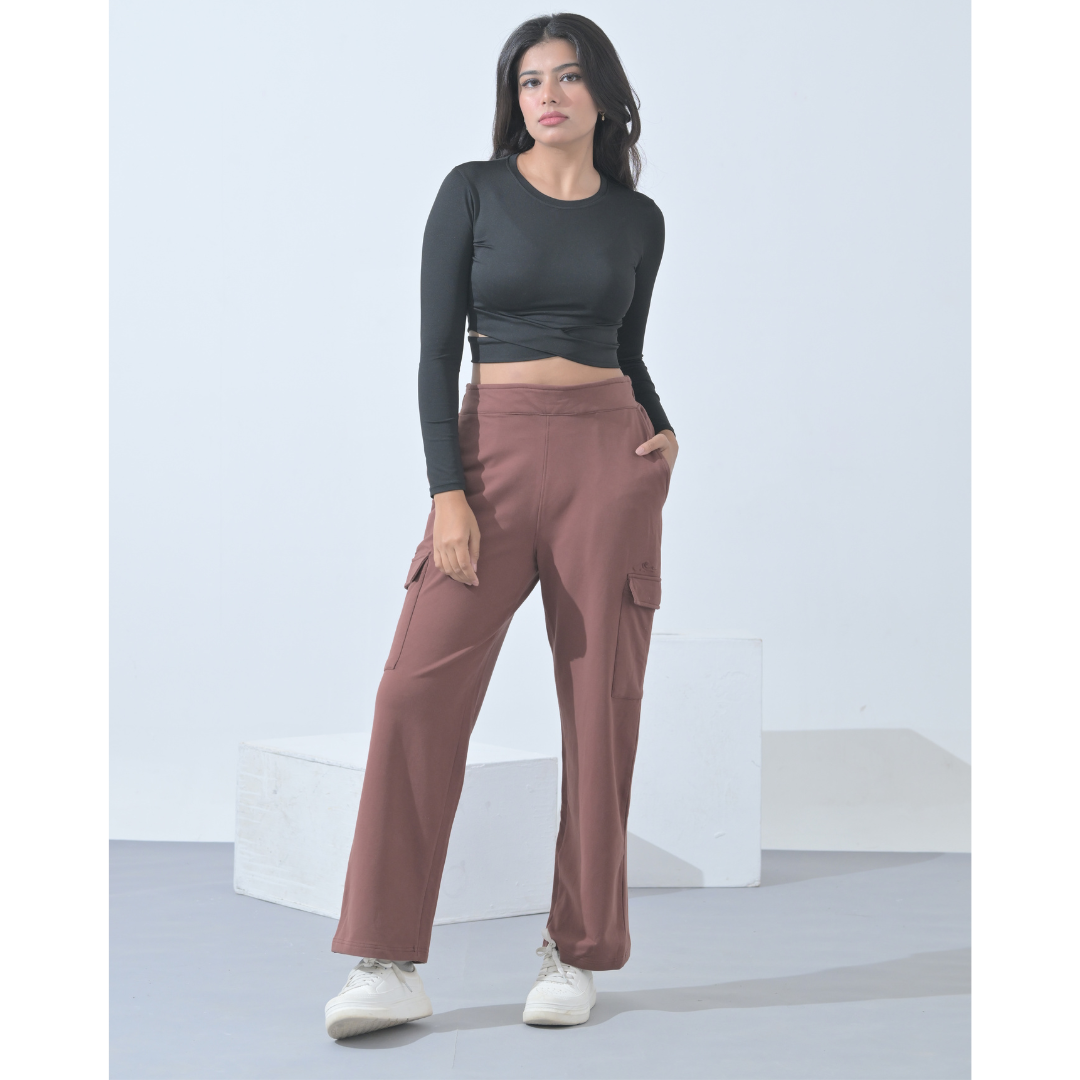 100% Supima Cotton Women Cargo Pants Chocolate Brown