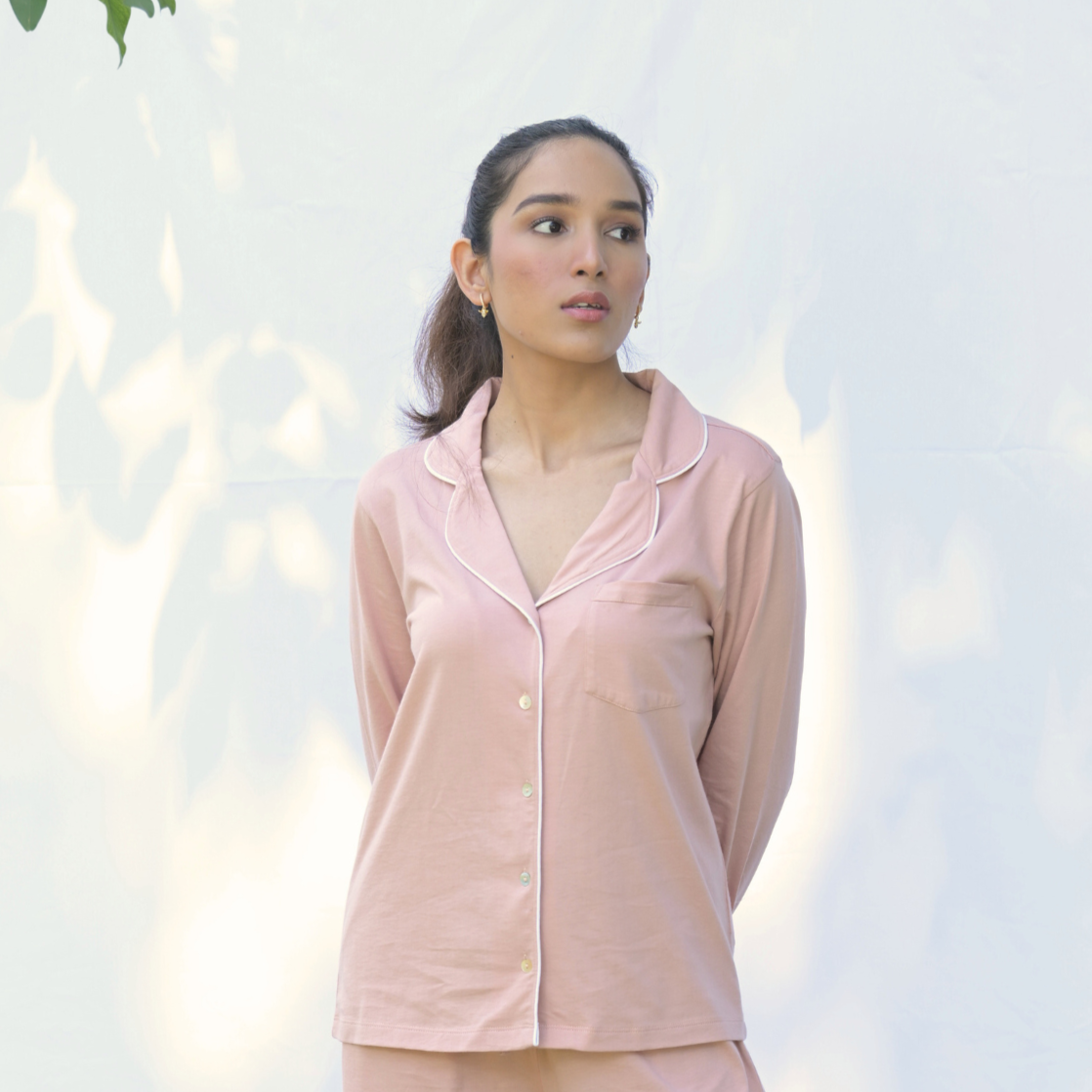Sink into ultimate comfort and timeless style with the Cosy Cocoon PJ Set. This luxuriously soft pima cotton set is perfect for cozy nights in.