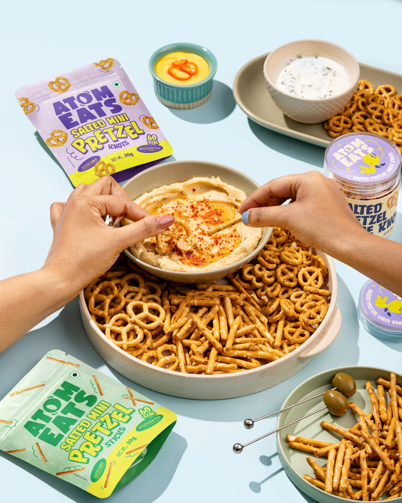 Pantry Upgrade: Ditch the boring snacks! Stock your pantry with Atom Eats Pretzel Knots, a crowd-pleasing alternative to khari puffs, makhana, rice crackers, or rusks.
