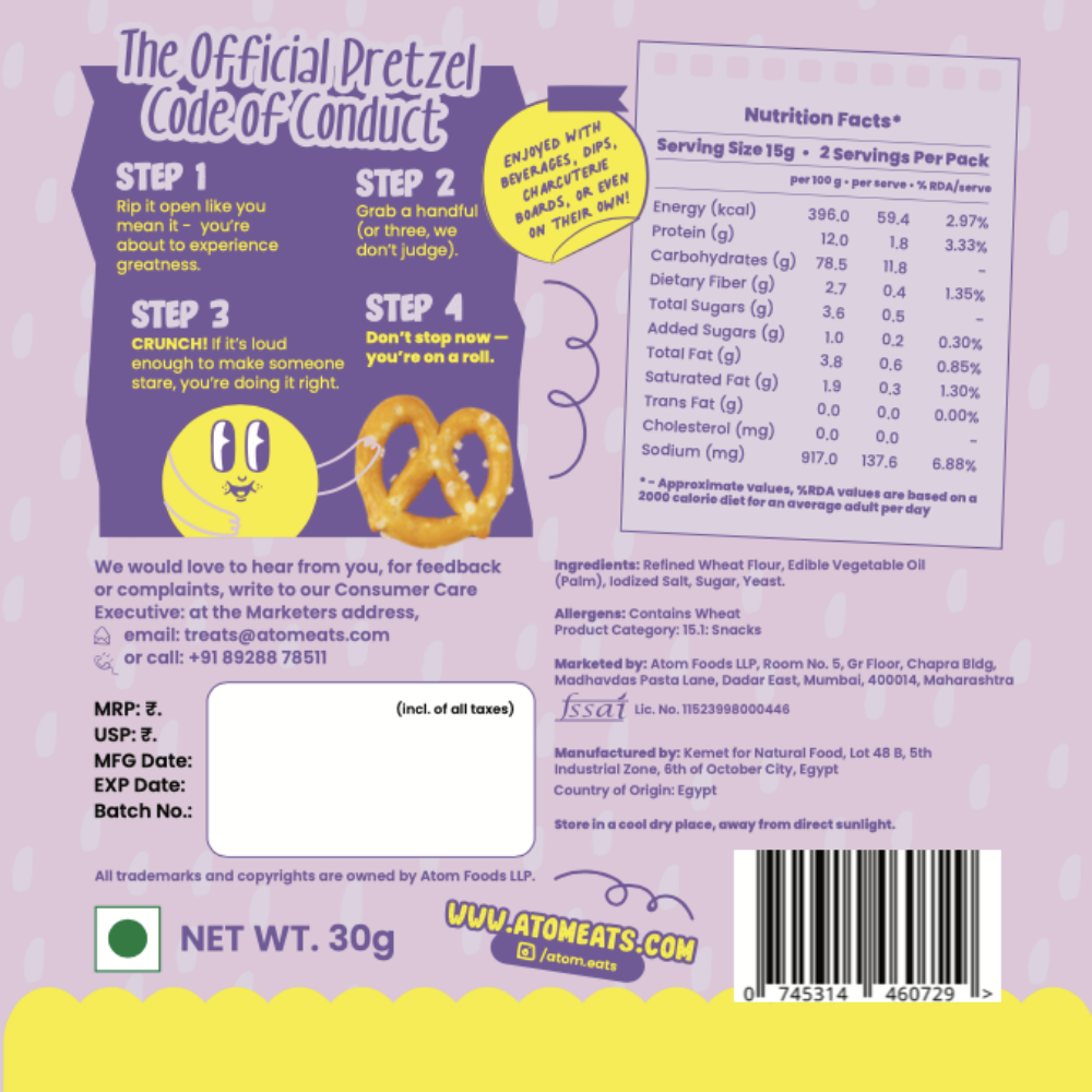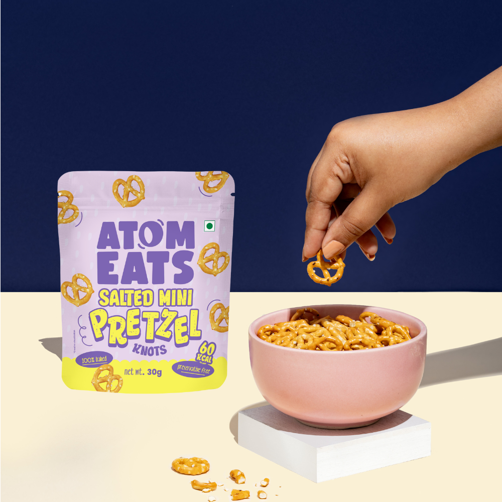 Classic & Crunchy: The timeless combination of crispy pretzel and a touch of salt creates a satisfying crunch that never gets old. Who needs banana chips, ragi chips or wafers when you have Atom Eats' Pretzels?