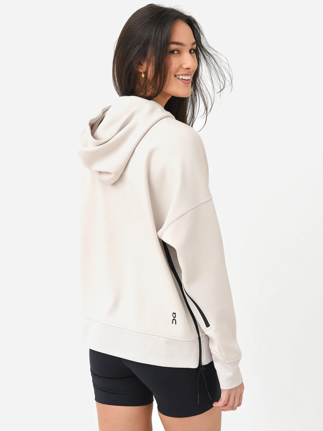 ON Women White Cotton Blend Hood Hoodie