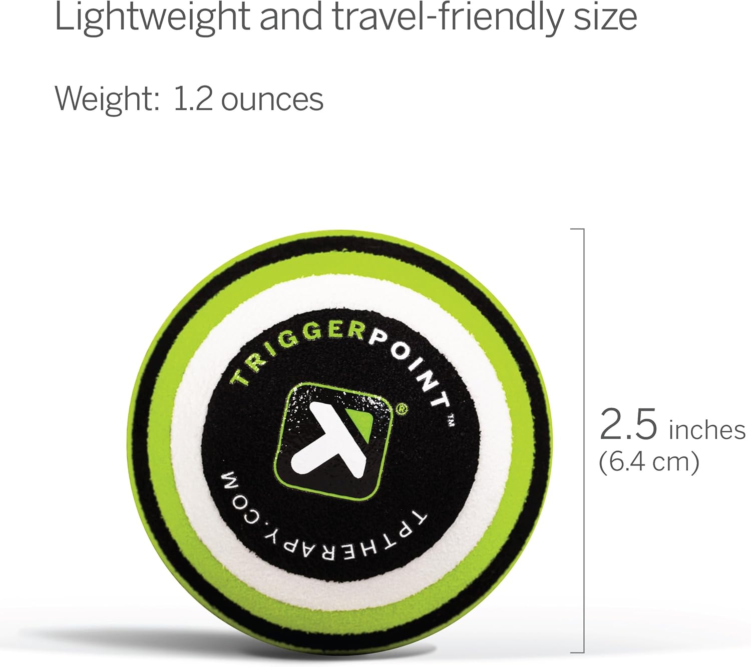 TriggerPoint's line of hand-made foam massage balls is specifically designed to replicate the feeling of a massage therapist's hands, so you can get relief from discomfort and tightness on your own. As part of the deep tissue essentials product line, these massage balls use a patented, layered construction made up of different densities. This design works to break up adhesions and stimulate blood flow better than non-layered tools to ease joint and muscle pain more effectively, and restore movement more quickly. The unique EVA foam surface is very dense, yet still compresses to "grip" the tissue, encouraging blood and oxygen flow to keep muscles and fascia healthy. The Mb1 (2.6-Inch diameter) is ideal for isolated areas, providing targeted relief without pinching or irritating nerves the mbx (2.6 inch diameter) has an extra firm surface that offers a deeper level of massage for more intense relief. The Mb5 (5-inch diameter) has a large surface area that provides the unique ability to release tight shoulders, hips and grown. All three massage balls are washable, lightweight and slip resistant. They are more hygienic than cloth and will not breakdown after repeated use.