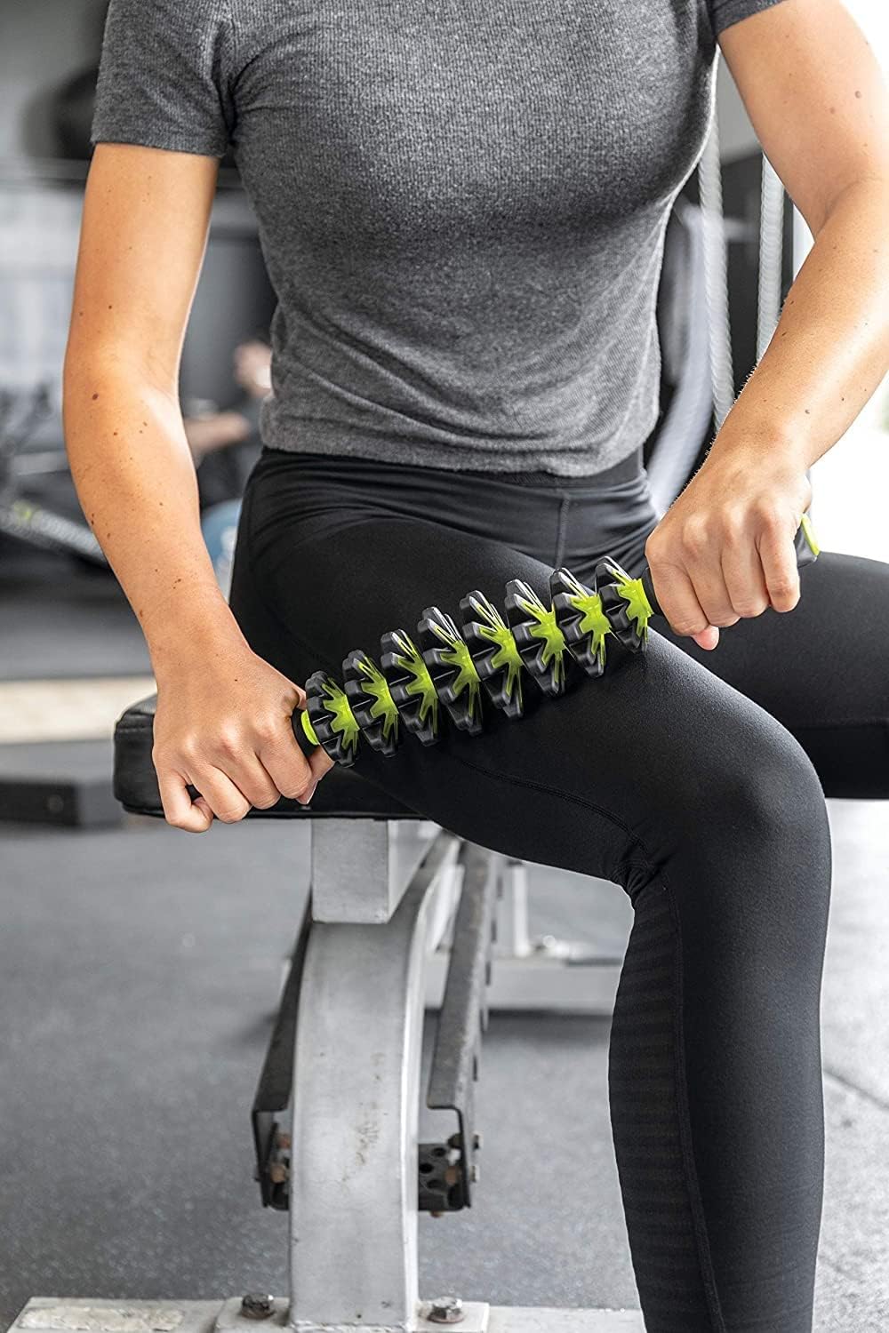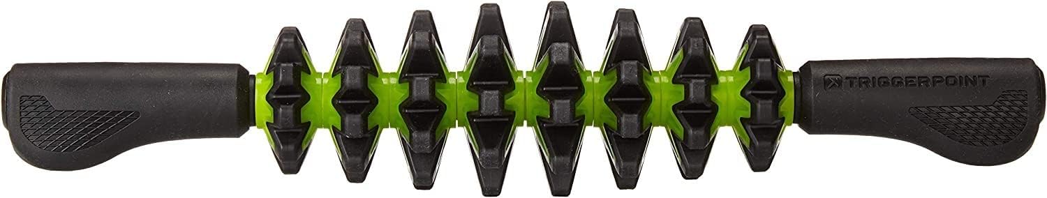 The TriggerPoint STK Target 15-Inch Travel-Size Massage Stick is the most compact handheld massage stick in TriggerPoint’s STK line. Ideal for rolling out at home, in the office, or while travelling, it packs enough punch in its portable size to keep muscles happy anywhere. Featuring eight gear-shaped, tissue-penetrating wheels that spin independently, the STK Target offers a deep tissue massage that reduces soreness and accelerates recovery. The rubberized outer surface grips the skin while rolling for effective fascial release and increased blood and oxygen circulation to muscles. Patented, comfort grip ergonomic handles allow for user-controlled pressure, and make it easy to target large muscle groups or pinpoint specific areas. The TriggerPoint STK Target measures 15 x 1 inches and weighs 0.75 pounds.